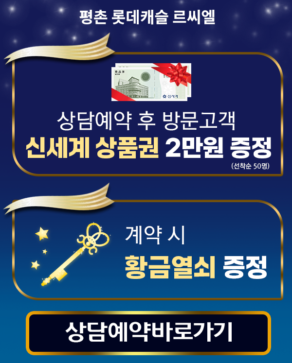 평촌 롯데캐슬 르씨엘 방문예약 고객의 개인정보를 수집합니다. 수집한 개인정보는 방문예약 이외의 목적으로는 사용하지 않으며, 모집 기간 완료 후 즉시 파기합니다. 개인정보의 수집 및 이용에 대한 동의를 거부할 수 있으며, 이 경우 방문예약 접수가 어려울 수 있습니다.